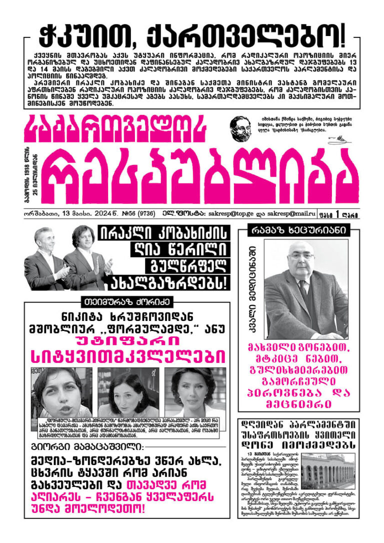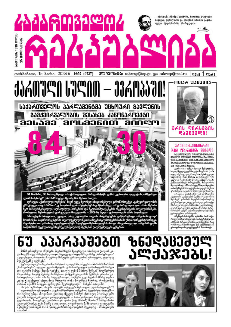 ხუთშაბათი, 30 მაისი 2024 წ.